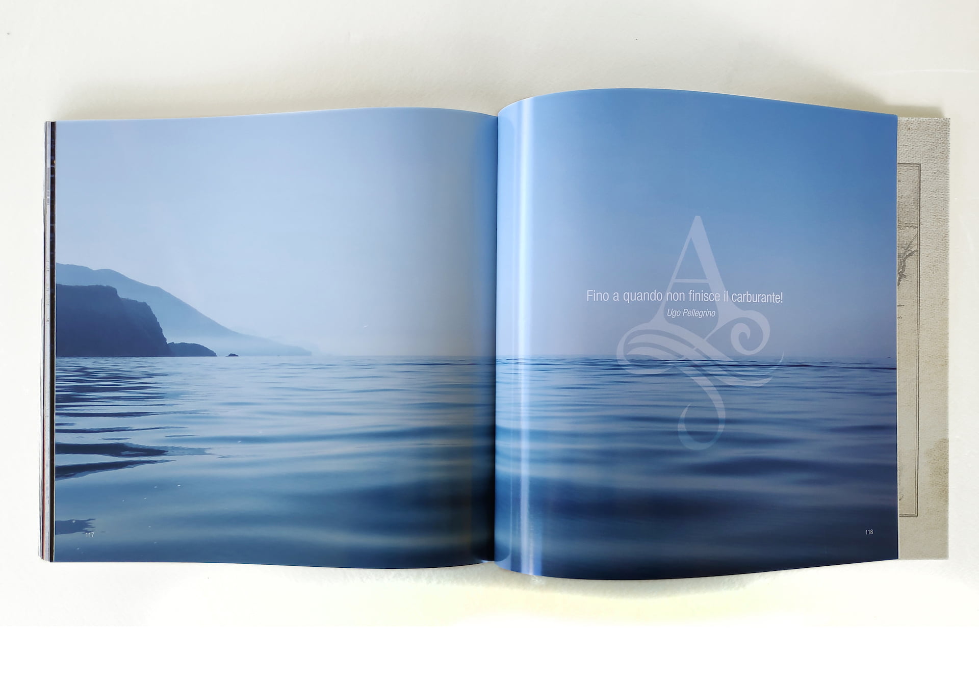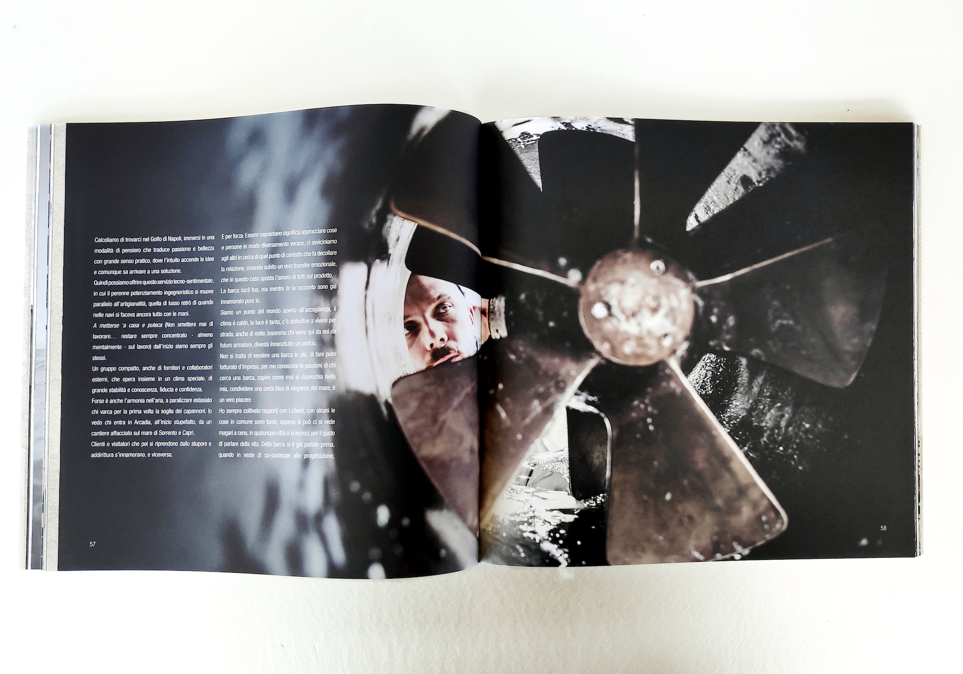 Il concept grafico ruota intorno alla fusione della contemporaneità e dell’heritage del cantiere con un impaginato e un art direction che vede il sovrapporsi di illustrazioni dal sapore antico alle immagini del talentuoso Alberto Cocchi, scatti da reportage – stampati su carta uso mano – miscelati e contrapposti agli Yachts in versione patinata lucidissima: un’innovativa idea di cartotecnica, che sottolinea il luminoso passato e l’acceso presente del cantiere.