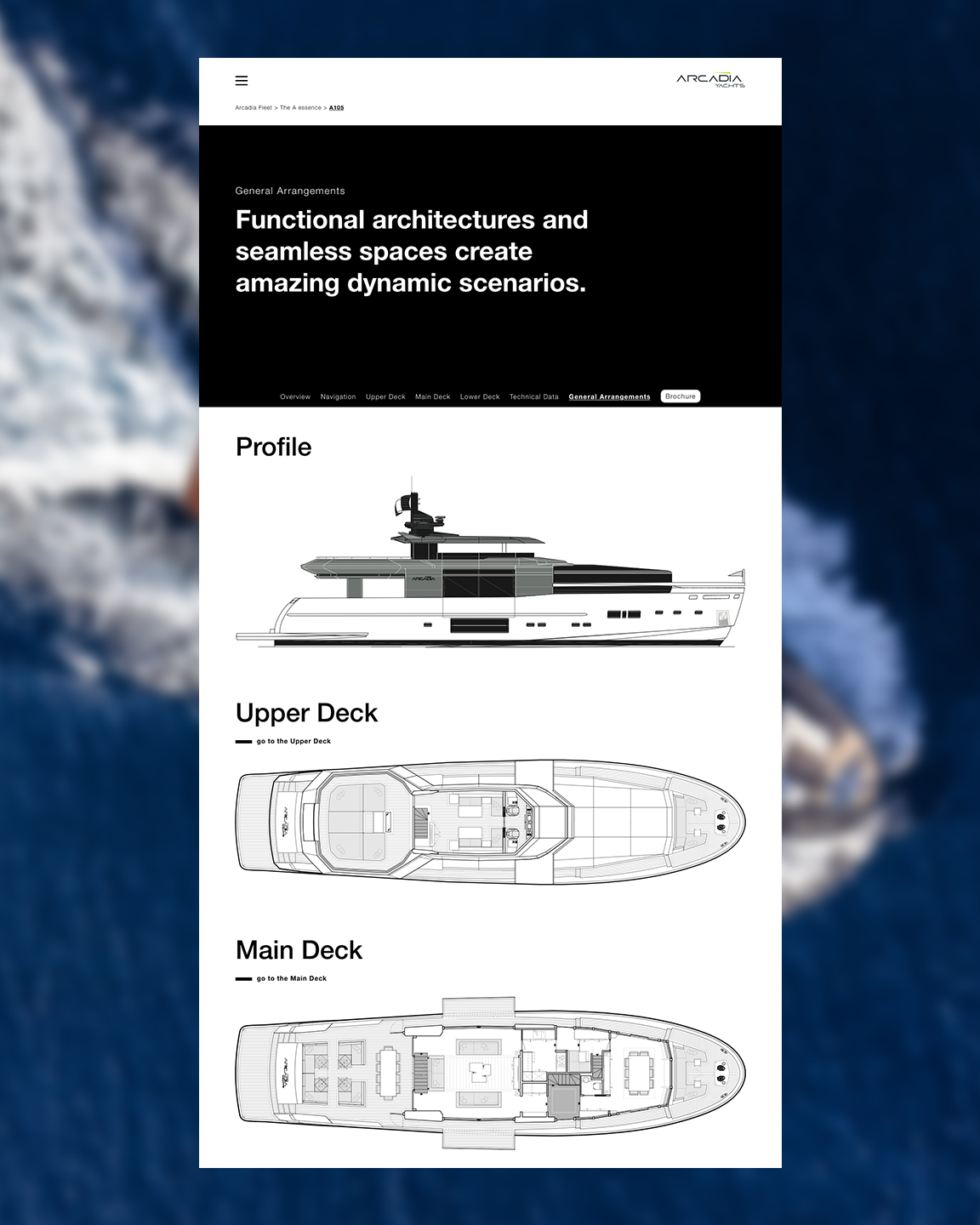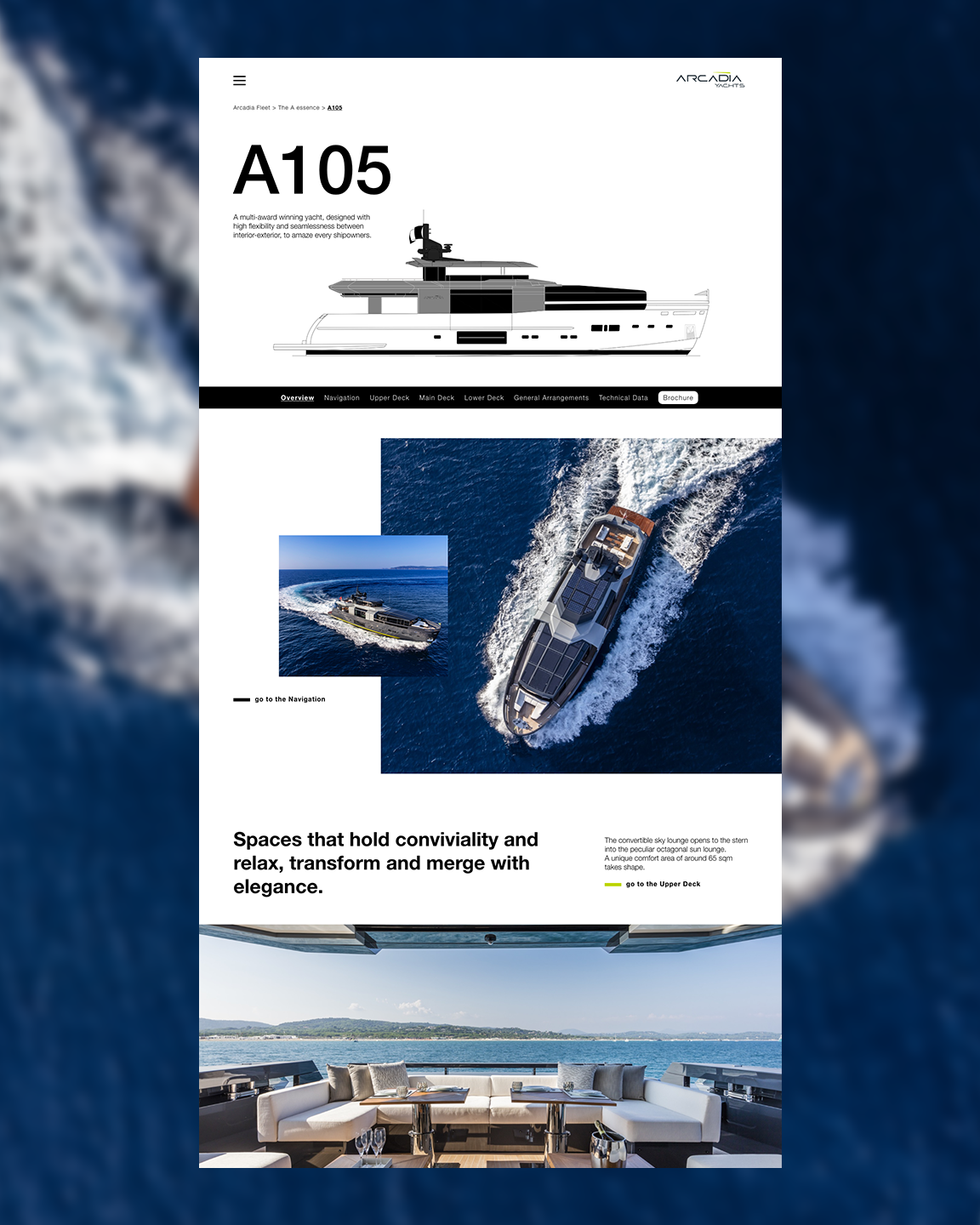 Il sito web ideato da WR&G per Arcadia Yachts, è stato pensato per mettere in luce due valori che caratterizzano il brand: l’attenzione verso l’innovazione sostenibile e il fascino delle sue imbarcazioni.