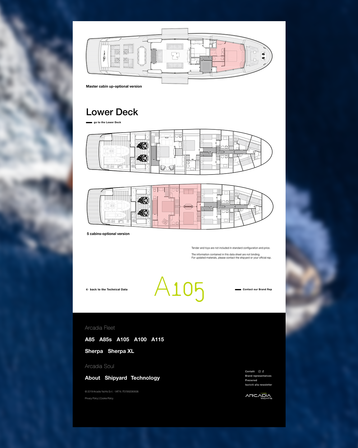 La struttura del sito, pensata per essere chiara e intuitiva, presenta un menù principale che guida l’utente attraverso le sezioni fondamentali: “Our Fleet”, “Technology”, “Shipyard”, “Brand Representatives”, “A Yachting Renaissance”. Questa organizzazione facilita l’accesso alle informazioni, permettendo di esplorare facilmente i vari aspetti del brand e dei suoi yacht.