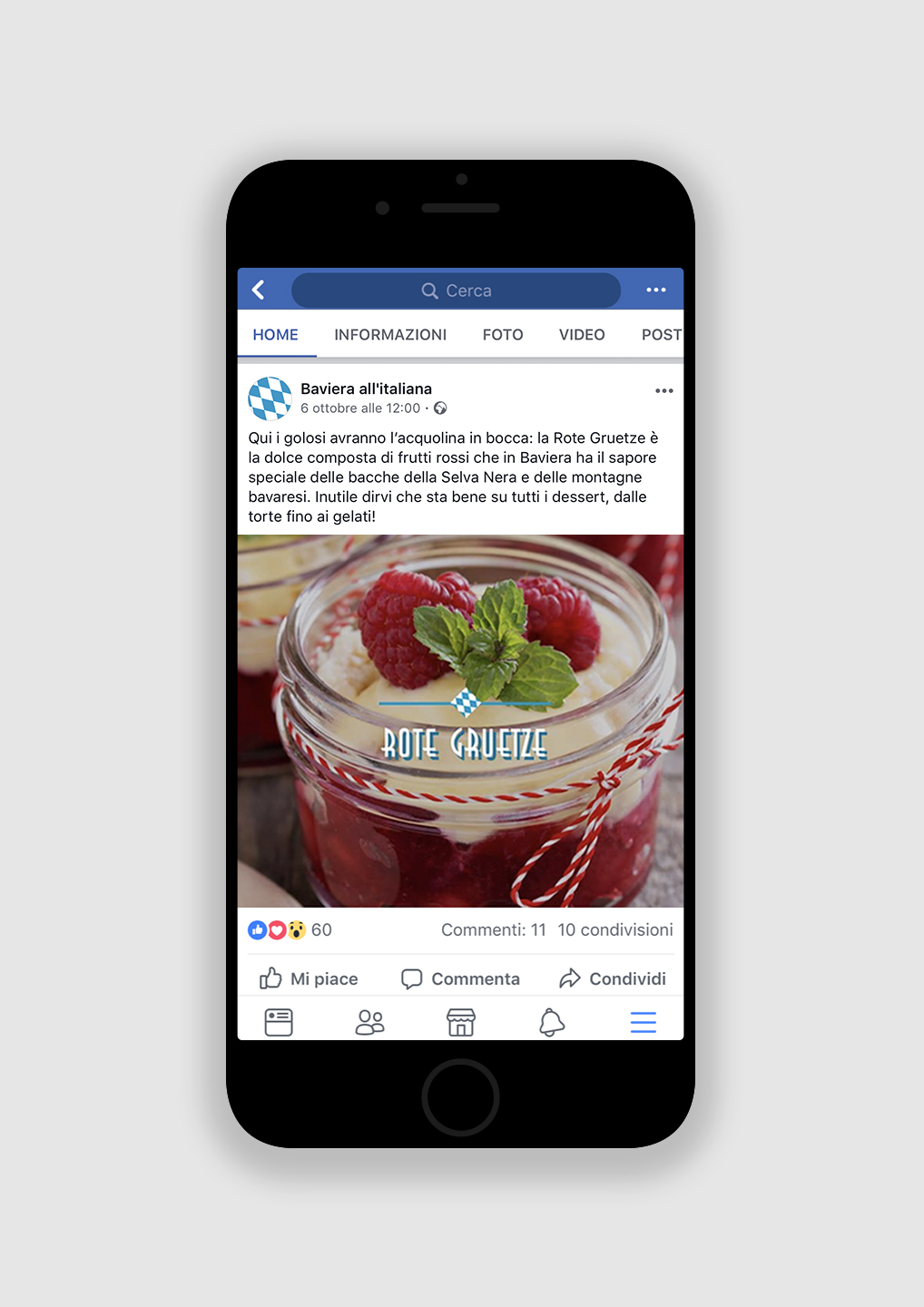 Come rendere noto il lavoro di Alp Bayern, il Ministero bavarese per la promozione dei prodotti e del territorio? Raccontando ad una nutrita community di appassionati di come la cultura bavarese e quella italiana si incontrano in cucina, tra gustosissime ricette, prodotti gastronomici tipici, curiosità e luoghi da scoprire. Tutto questo tramite una pagina Facebook con un piano editoriale articolato, a metà tra un ricettario e una guida turistica.