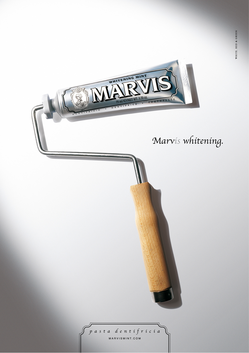 Quando White, Red & Green intraprende il suo rilancio Marvis è un dentifricio apparentemente esaurito, mentre la competizione è internazionale, affollata, specializzata, codificata. Che fare? WR&G sceglie di fare tutt’altro. Niente camici, test, formule chimiche, ingredienti sempre più scientifici. Punta sul look vintage e ci gioca. All’insegna di “Marvis is” usa i codici dell’arte, della moda, dei social.