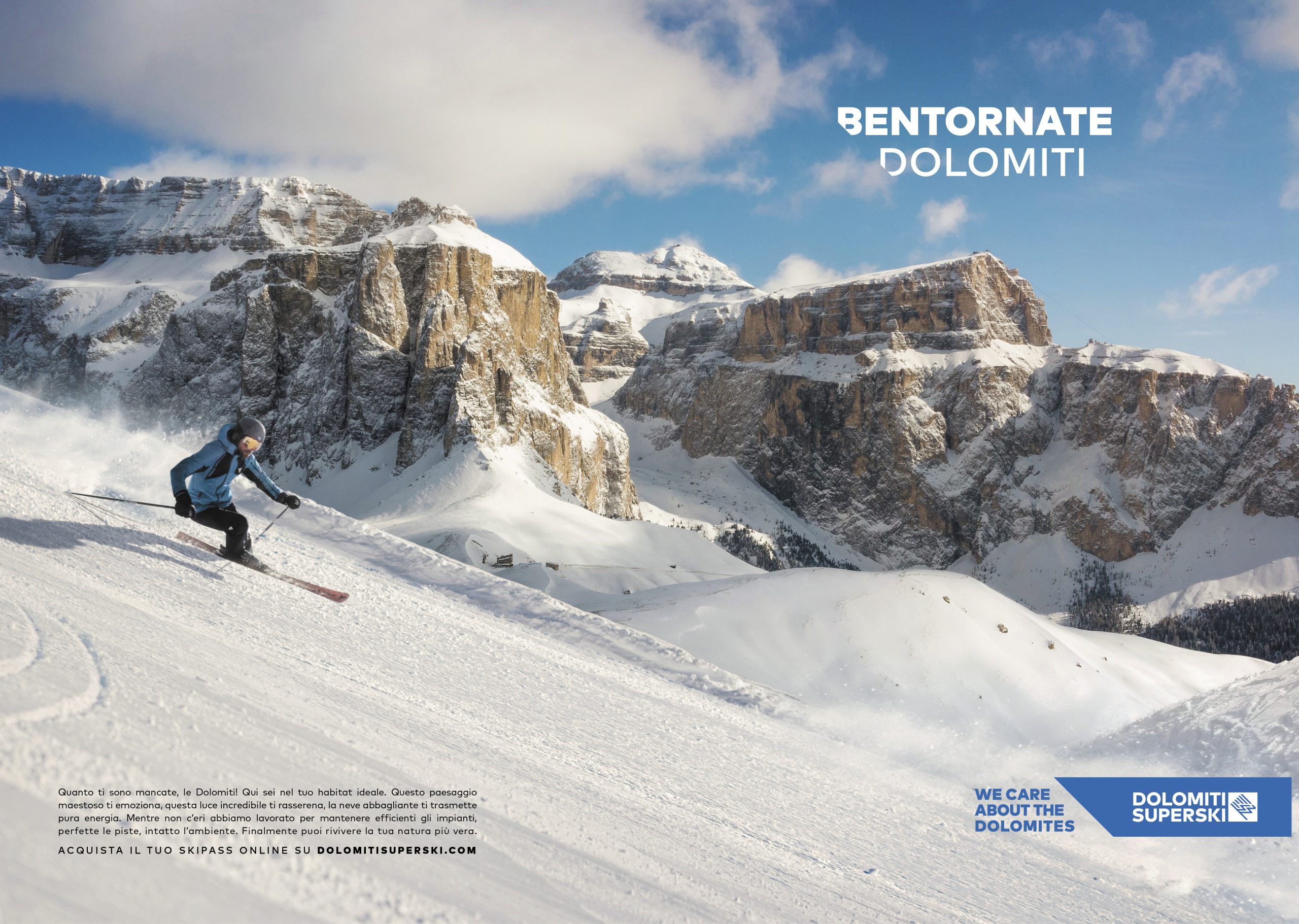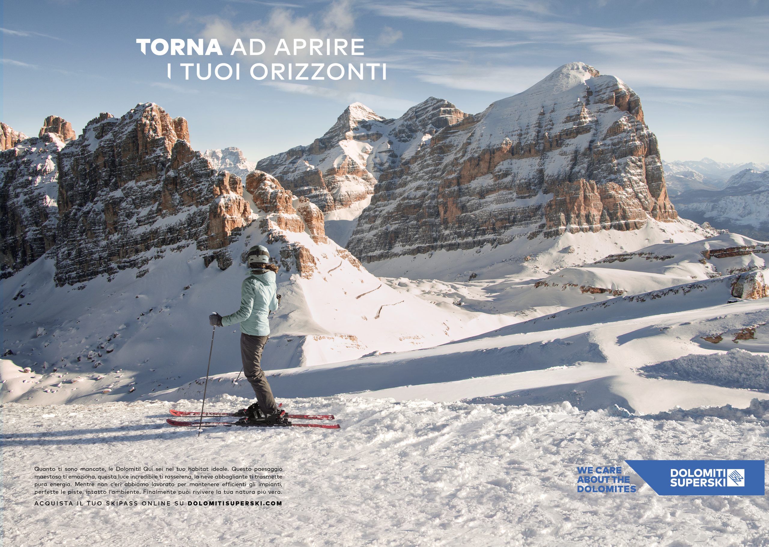 lI maggiore comprensorio sciistico italiano, patrimonio dell’umanità tutelato dall’Unesco, ha affidato la comunicazione alla WR&G a partire dalla campagna di riapertura degli impianti, centrata sul senso di rinascita del ritorno alle Dolomiti, dove riprendere a sciare significa riprendere a vivere.