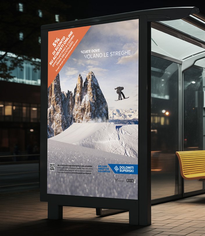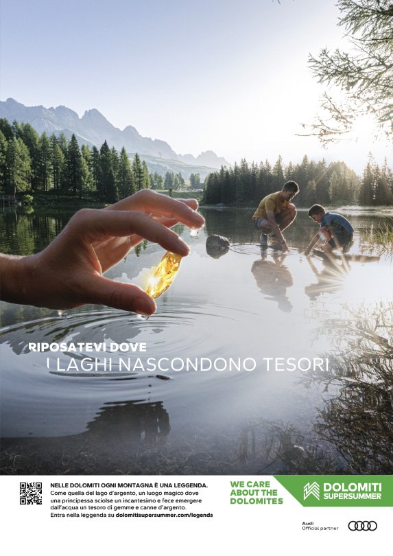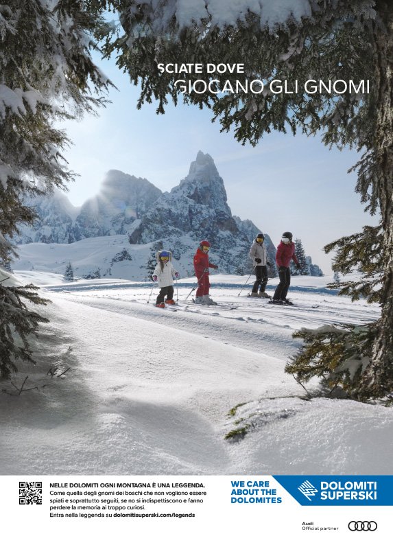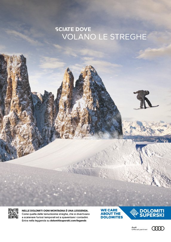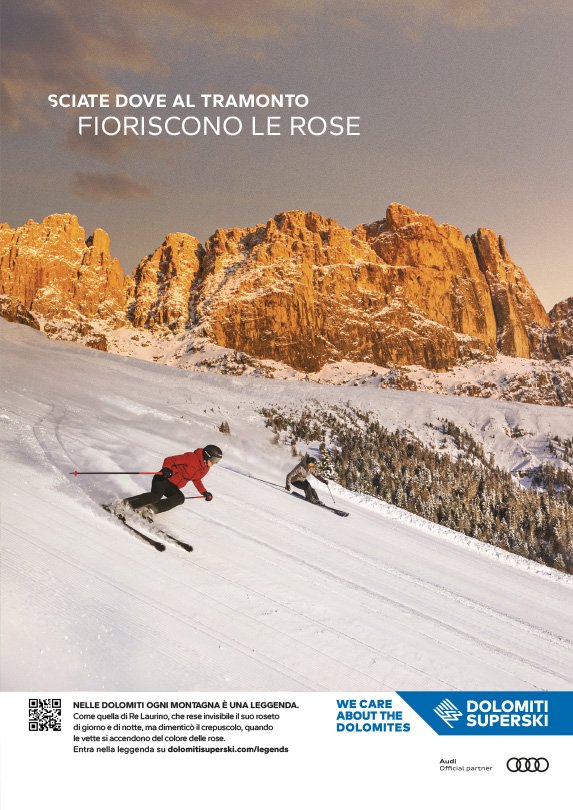 “Nelle Dolomiti ogni montagna è una leggenda”, dichiara il claim della campagna ideata da White Red & Green, mentre in un’atmosfera onirica sciatori e visitatori si muovono in un paesaggio che li trasfigura, con un tone of voice leggendario.