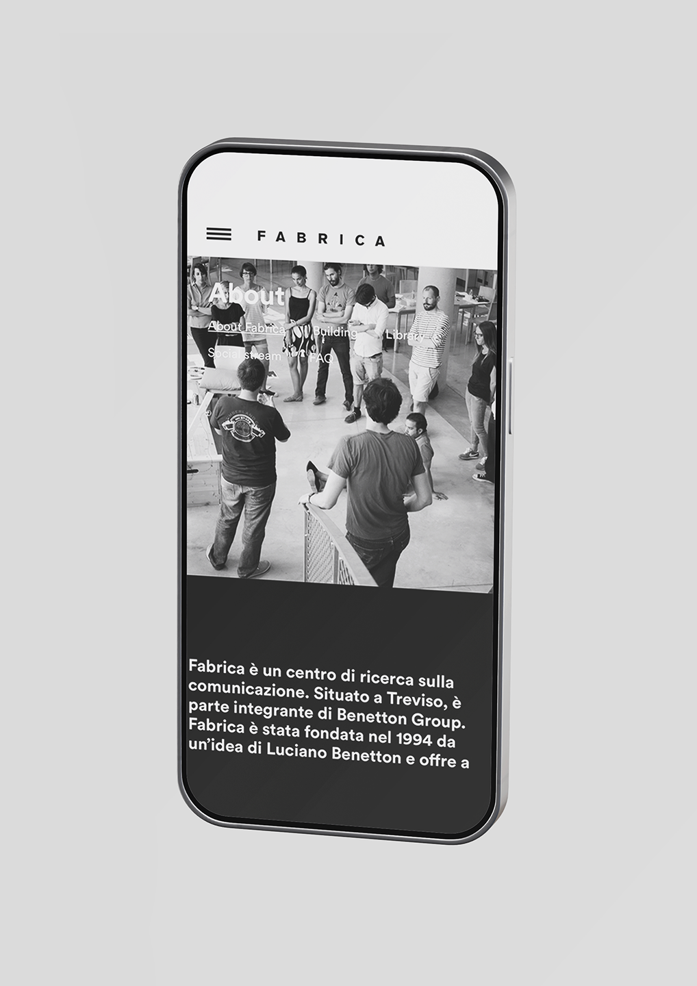 Fabrica, il centro di ricerca sulla comunicazione di Benetton Group, ha scelto White, Red & Green per riprogettare la propria presenza online. Dallo studio con i dipartimenti creativi dell’azienda, è nata un’esperienza completamente inedita volta ad enfatizzare i tantissimi progetti creativi che Fabrica intraprende ogni giorno nel mondo del design, dell’editoria e delle campagne sociali.