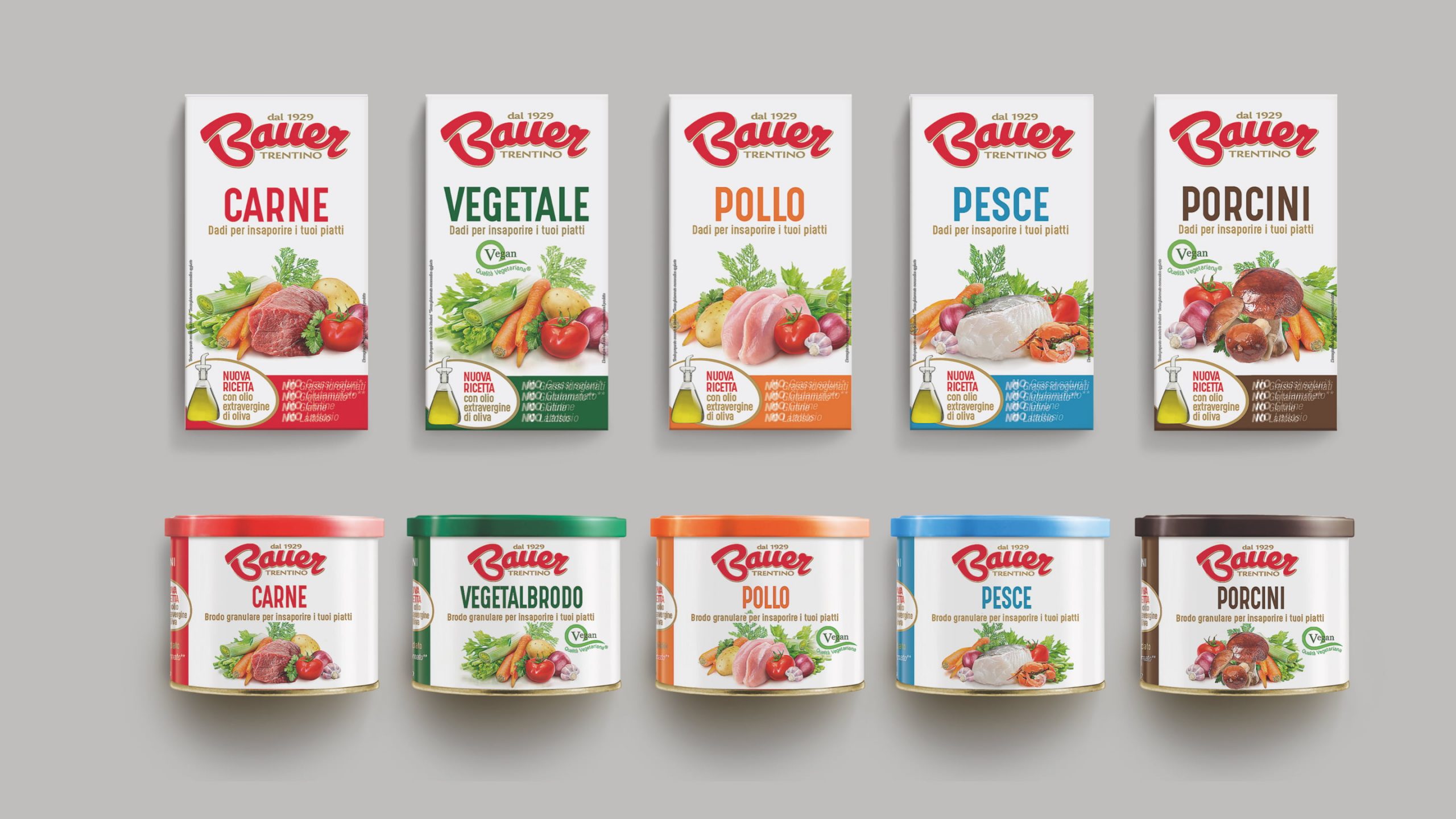 Il redesign è iniziato con i dadi e granulari Classici, passando per la linea Bio e i più recenti dadi alle Spezie fino al nuovo lancio delle Salse e dei Fondi, dedicati al canale Food Service.