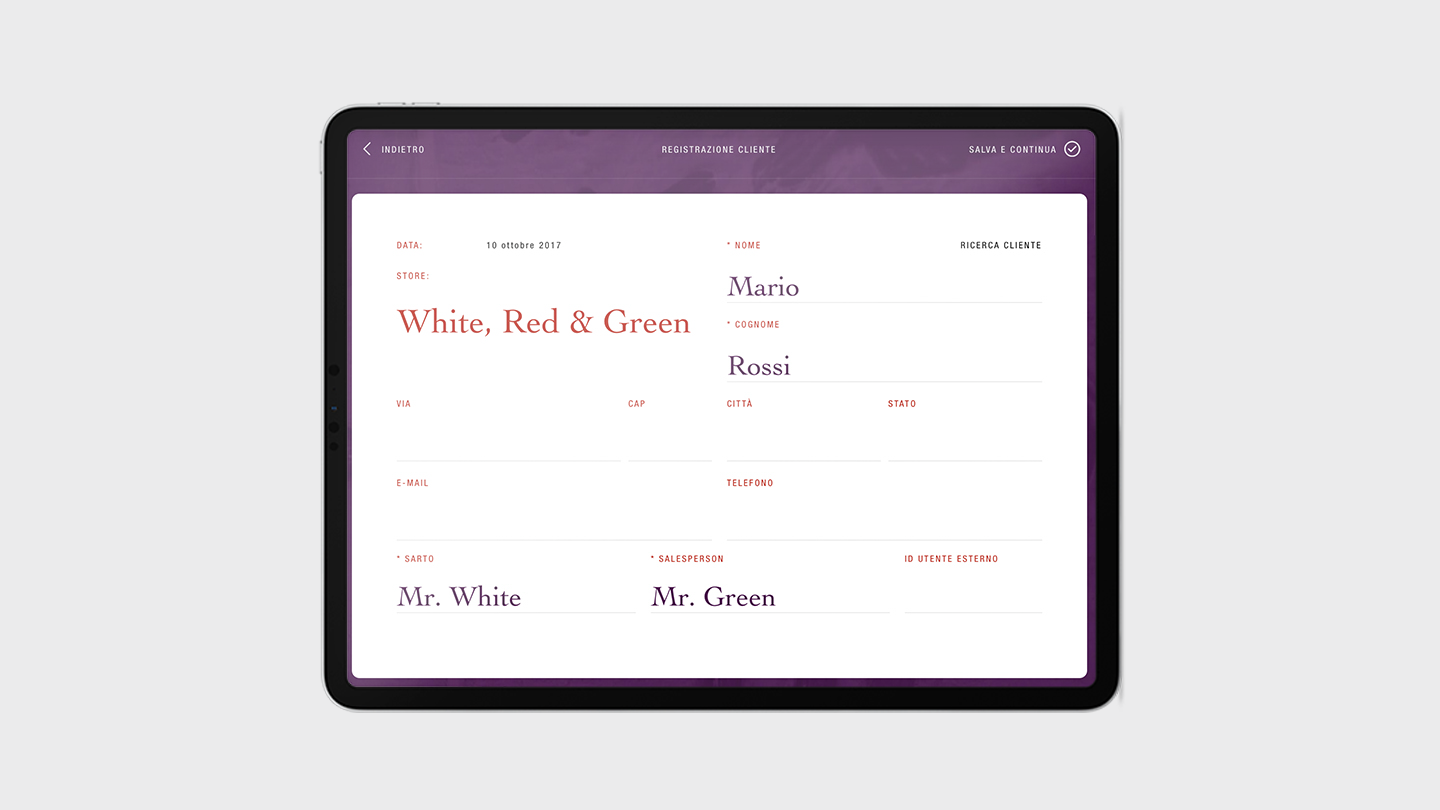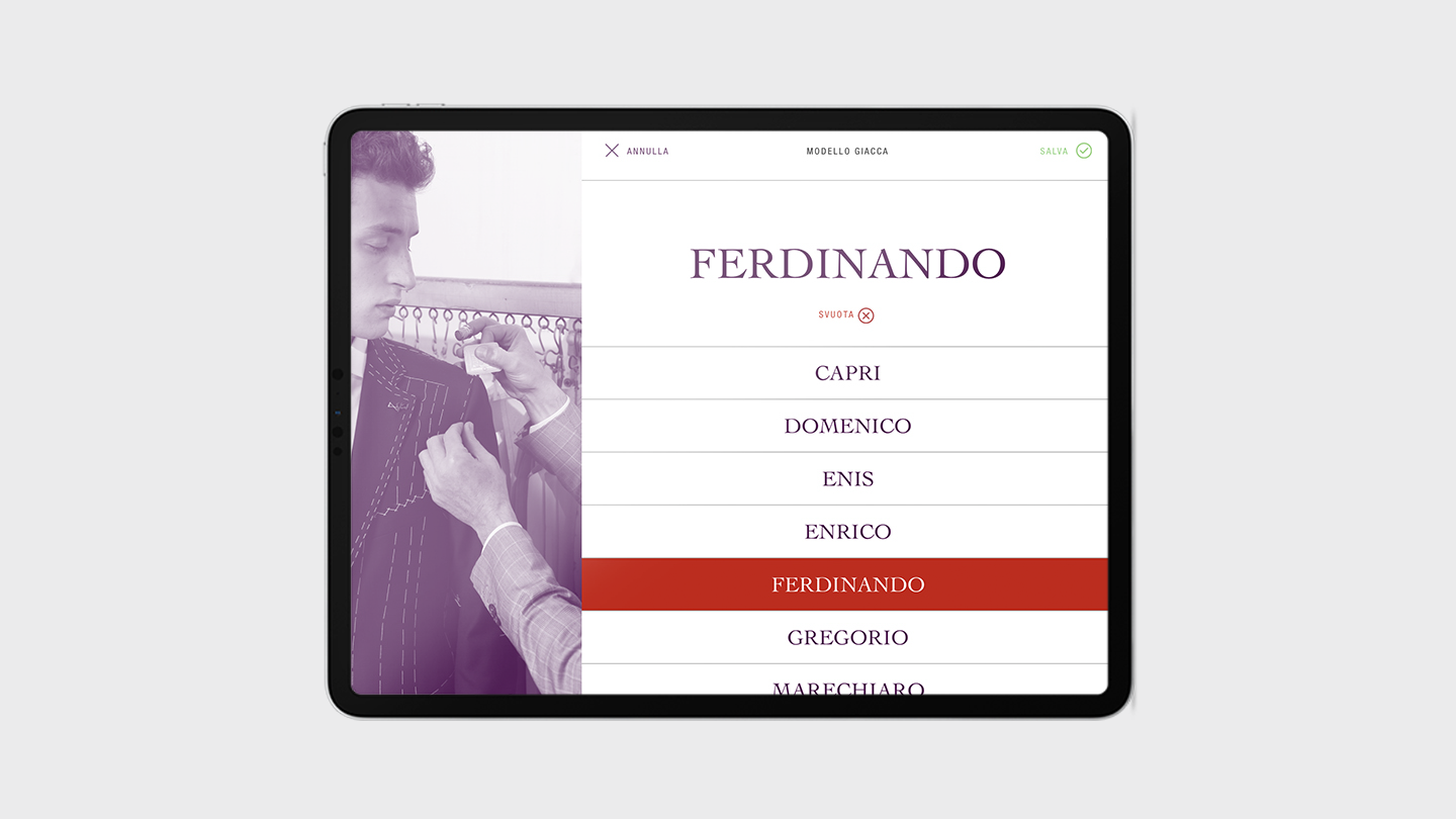 ISAIA, brand napoletano di abbigliamento maschile, ha scelto White, Red & Green per lo sviluppo di un’app iOS indirizzata alla forza vendita. Lavorando con i dipartimenti IT, Customer Care e Prodotto sono stati realizzati un tool web per la verifica della disponibilità dei tessuti e l’app Made to Measure che, integrandosi con il CRM SalesForce di ISAIA, permette il passaggio di informazioni da boutique a sartoria per la realizzazione di capi su misura.