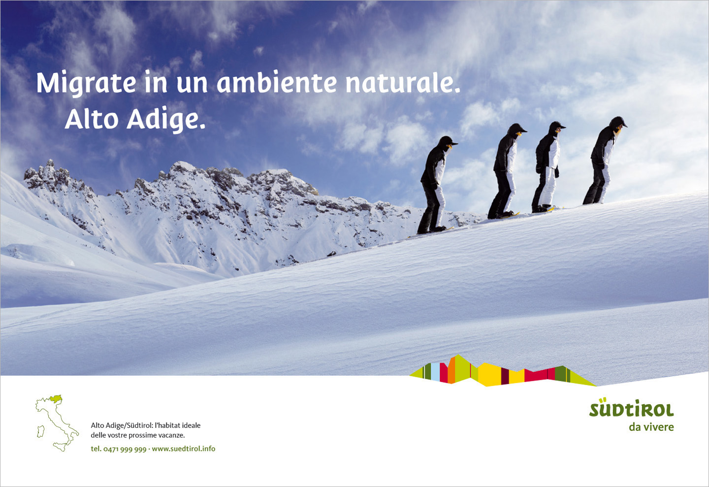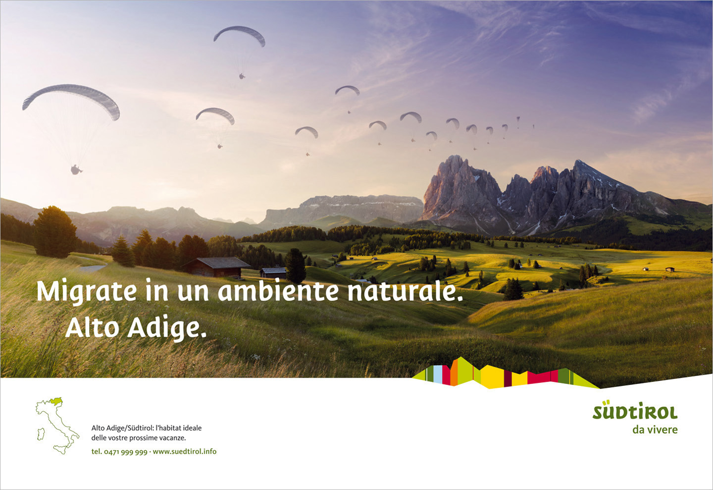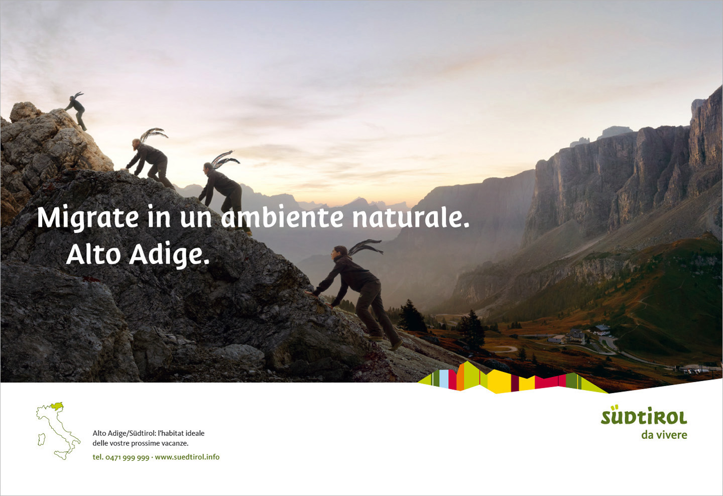 Da meta turistica ad habitat naturale dove migrare: l’Alto Adige Südtirol è protagonista di una comunicazione che ha rafforzato la personalità del marchio e di una regione che promuove turismo e prodotti tipici.