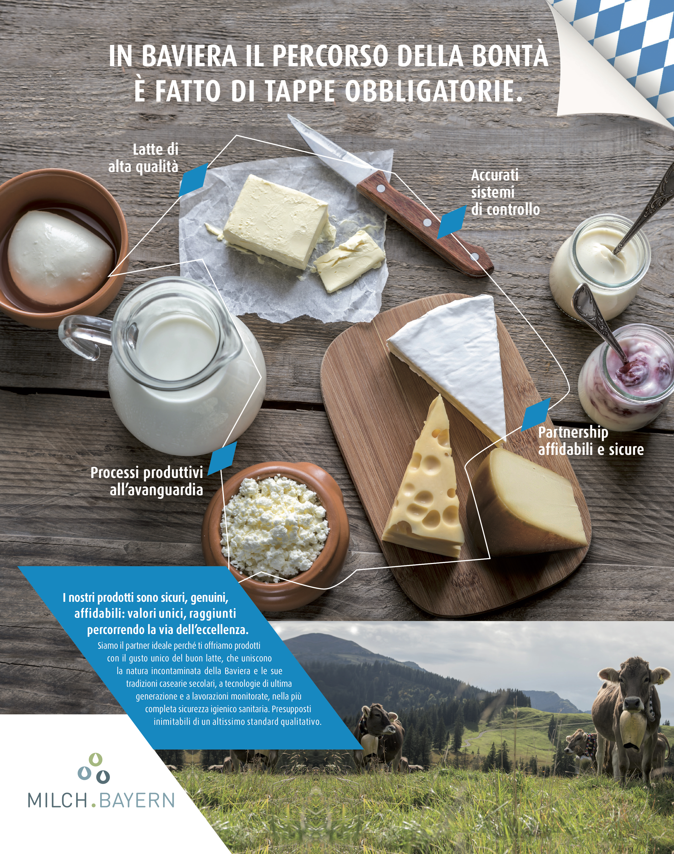 Il progetto di Milch Bayern si aggiunge alle iniziative di comunicazione che già da anni sono gestite da White, Red & Green per conto di Alp Bayern, che riguardano la promozione di tutti i prodotti agroalimentari della Baviera.