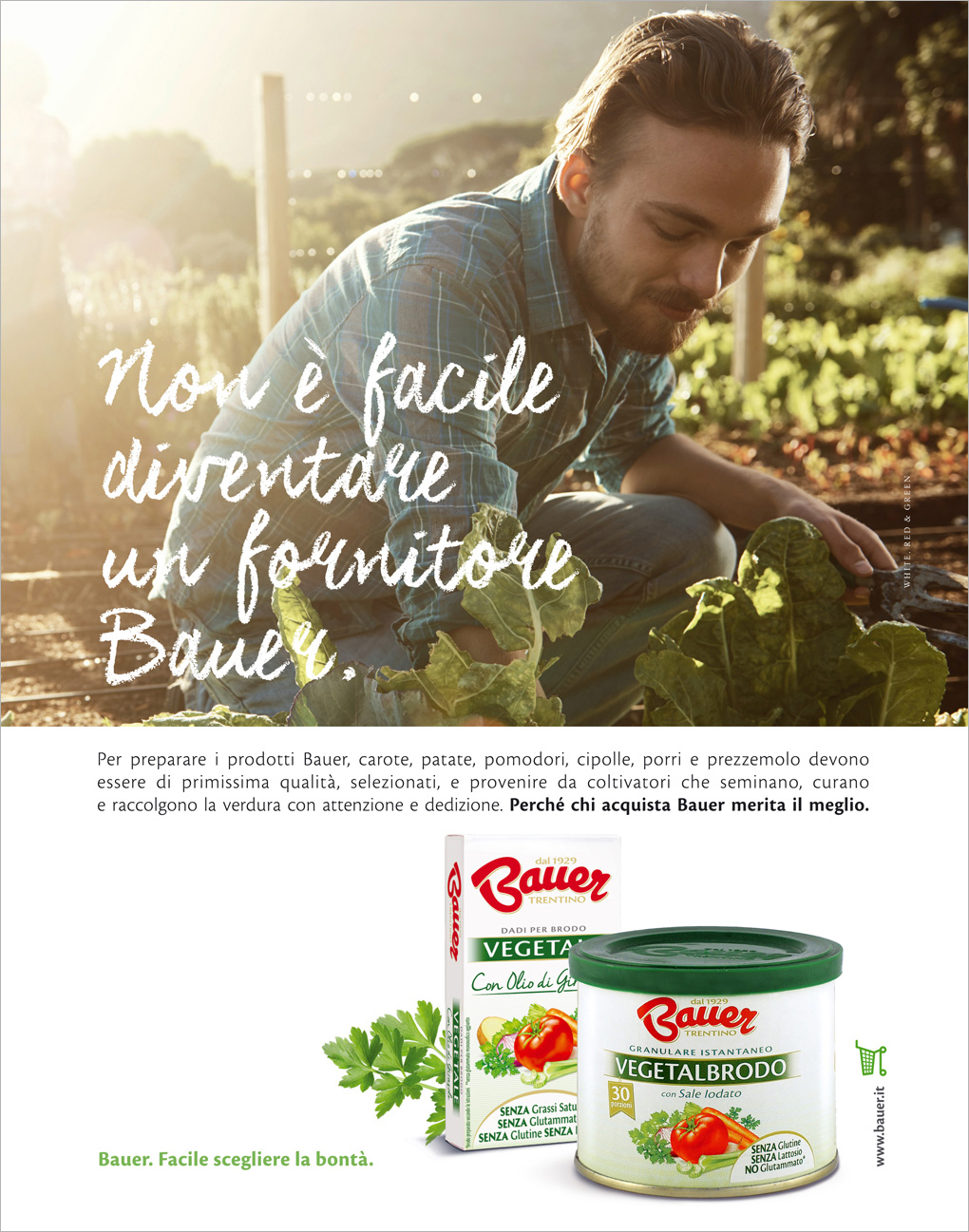 La campagna sottolinea la determinazione e la coerenza delle scelte Bauer in fatto di ingredienti autentici, fornitori selezionati e consumatori consapevoli, con uno stile di comunicazione semplice e friendly come i valori che trasmette.