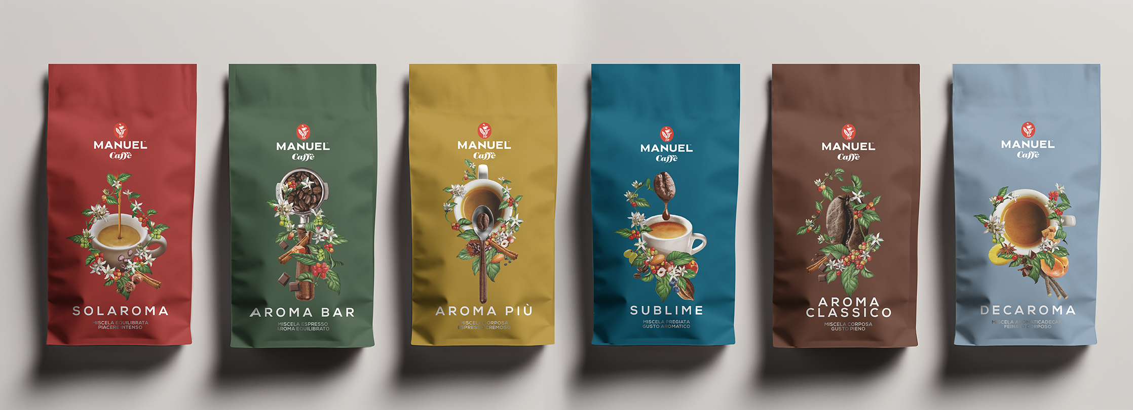 Da 50 anni Manuel Caffè realizza miscele raffinate di alta qualità e oggi è un’identità affermata che esporta prodotti innovativi in tanti paesi esteri. L’azienda si è affidata a White, Red & Green per creare un packaging distintivo che riuscisse a emergere rispetto ai concorrenti in un mercato ad alta competitività e veicolasse il corretto il posizionamento di una linea premium destinata a Ho.Re.Ca. e consumo domestico.
