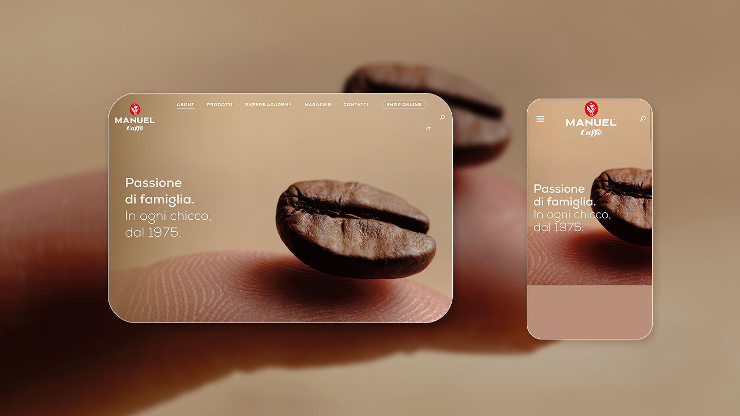 Manuel Caffè, storica azienda di Conegliano Veneto produttrice di caffè, ha affidato a White, Red & Green la realizzazione del suo sito web. Un portale che racconta l’identità del brand, un marchio storico, familiare e in crescita internazionale, attraverso un linguaggio visivo e narrativo emozionale e accessibile.